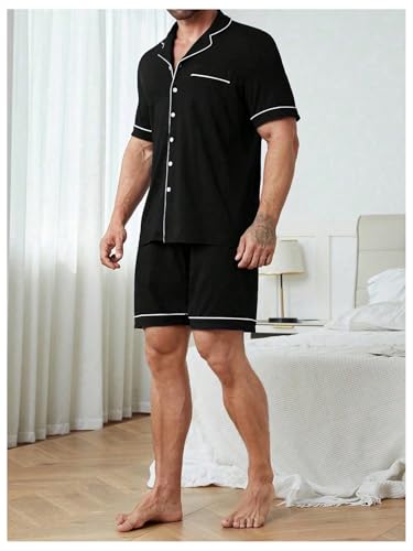 HOT ! Verdusa Men's 2 Piece Button Up Short Sleeve Top and Short Sleepwear Pajama Sets