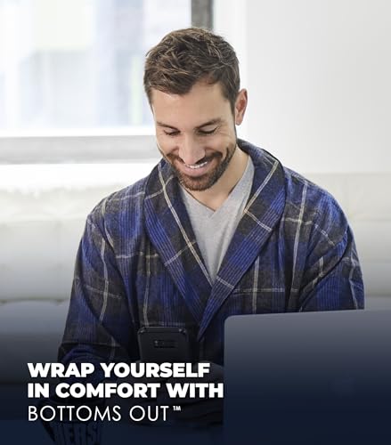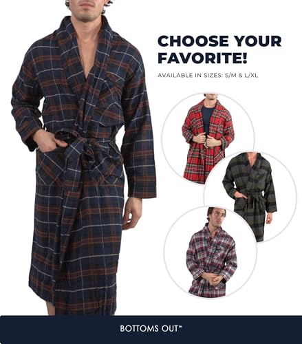 Bottoms Out Men's Flannel Sleep Robe, Flannel Bathrobe for Men, Shawl Collar Winter Plaid Robe Perfect for Men and Women