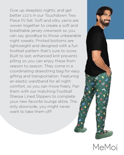 HOT ! MeMoi Men's Touchdown Two Piece PJ Set in a Bag Turf Green S