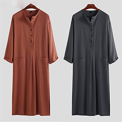 - Design: Men maxi shirt robe, long sleeves, suitable for every season, stand collar, button fly, one front pocket, two side pockets design