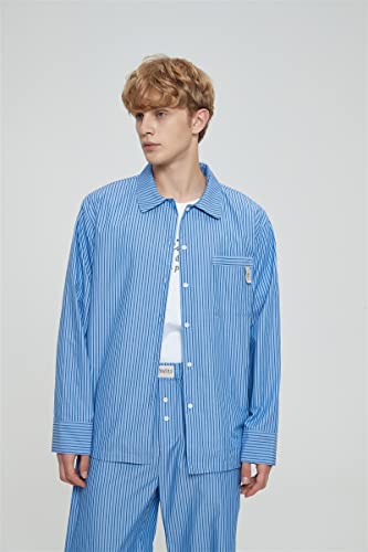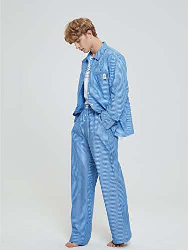 7 VEILS Mens Natural Lyocell Cotton Long Sleeve Pajamas Set Button Down Loungewear Sleepwear Striped Pjs Set