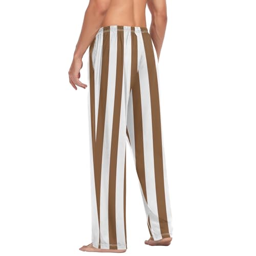 HOT ! Lounge Pajama Pants for Men Brown White Stripes Men's Sleep Bottoms Pants with Drawstring, S