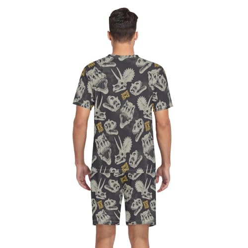 Men's Short Sleeve Pajama Set Dinosaur Skull Summer Pjs Set 2 Piece Loungewear Sleepwear with Pockets 1