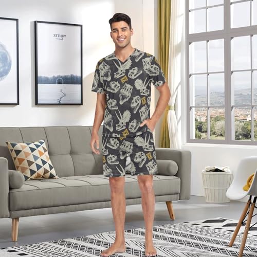 Men's Short Sleeve Pajama Set Dinosaur Skull Summer Pjs Set 2 Piece Loungewear Sleepwear with Pockets 3