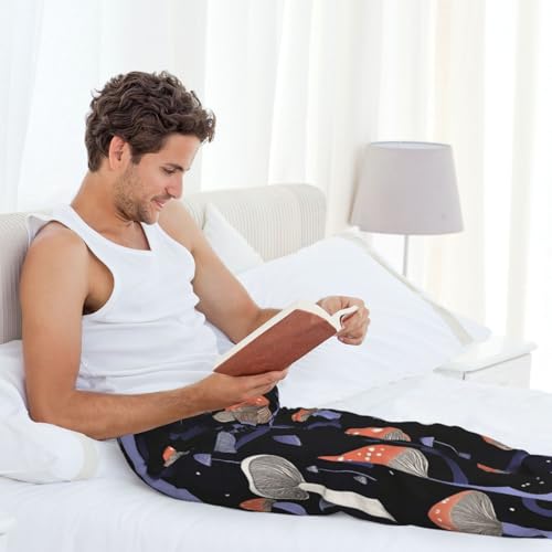 HOT ! Black Cats Mushroom Pajama Pants Mens Lounge Sleep Pant Long Pajama Bottoms Drawstring Elastic with Pockets