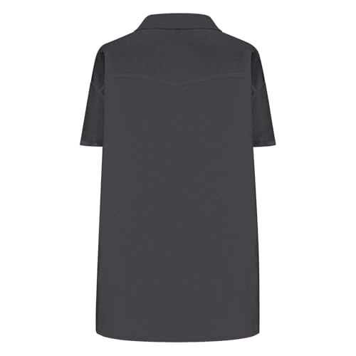 Mens Short Sleeve Button Down Lapel Shirts Work Casual Plus Size Loose Relaxed Fit Summer Shirt with Two Pockets