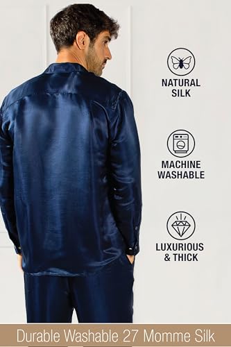 • Explore our top-grade men's silk pajama sets in 27 momme mulberry silk—luxurious and durable for everyday wear. Easily machine washable for enduring comfort.
