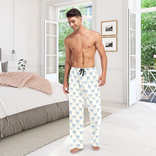 Men's Blue Bow Pajama Pants with Pockets - Straight Fit Cotton Sleep Bottoms for Lounge & Nightwear#163 1