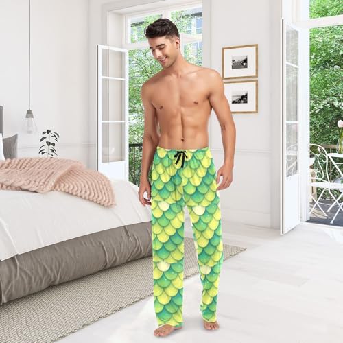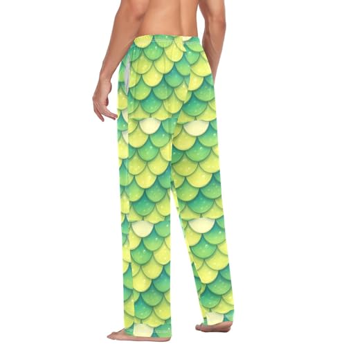 Men's Green Mermaid Scale Pajama Pants with Pockets - Straight Fit Cotton Sleep Bottoms for Lounge & Nightwear#835