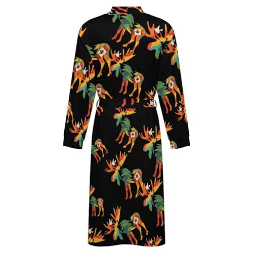 HOT ! Colorful Moose Canada Flag Soft Robe Long Sleeve Bathrobes V Neck Sleepwear Spa Robes with Belt Men Woman