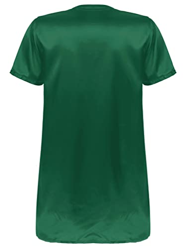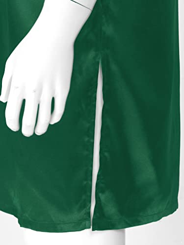 • Men Women Satin Nightgown V Neck Short Sleeve Sleepwear Nightclothes Homewear Sides Split Nightwear