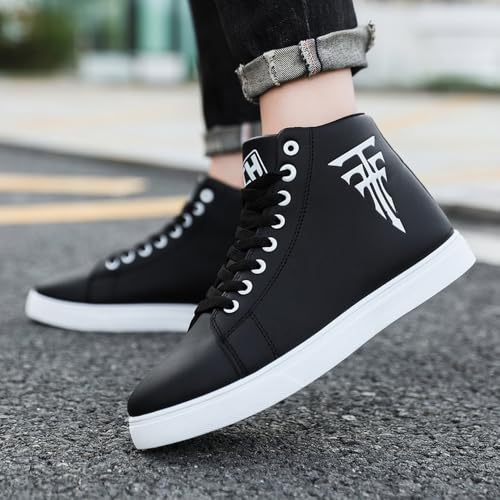 tazimall Mens Round Toe High Top Sneakers Casual Lace Up Skateboard Shoes 7