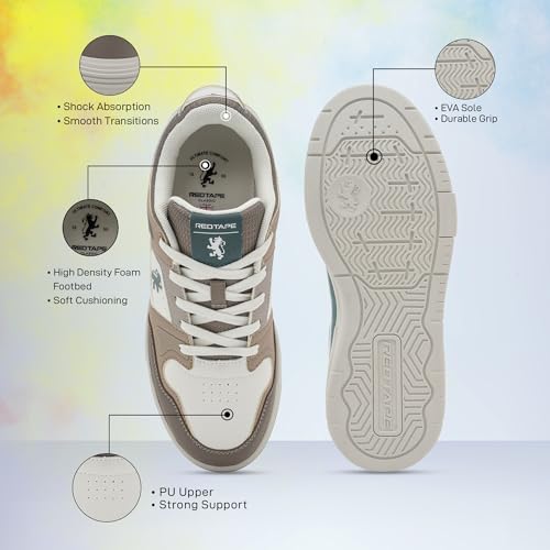 Red Tape Men's Casual Retro Fashion Sneakers Lightweight Men Classic Low Top Lace Up Slip-On for Office, Travel, Walking, Running, Summer Daily Wear, Gym, Breathable Design with Cushioned Insole 1