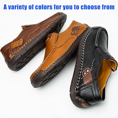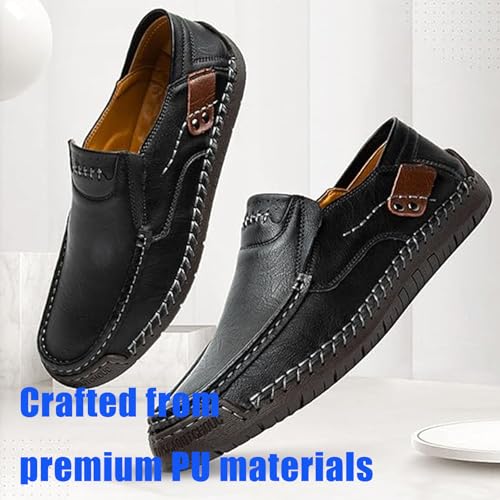 Sole material: RubberOuter material: LeatherClosure type: Pull-OnPremium Quality Insole: This men's leather shoes with orthotic insole offers strong arch support, enhancing comfort and ease pain on the foot and heelNon-slip Outsole: This walking shoe features a multi-lug design, and the sturdy rubber outsole to maximum traction on wet and dry surfaces, keep your balance all the timeLightweight Easy Slip-On: Slip on shoes for men with an elastic collar for easy slip on and off, fashion design offers the most convenienceHigh Quality Materials: Crafted from premium PU materials, this orthopedic shoes for men has a soft and long-lasting upper, providing the flexibility and comfort you need for everyday stylish wearVersatile Style: Modern minimalist silhouette, different color options that pair with jeans, chinos, or dress casual attire. Suitable for outdoor leisure walking Perfect for everyday use. High quality materials and excellent craftsmanship ensure long-lasting durability.