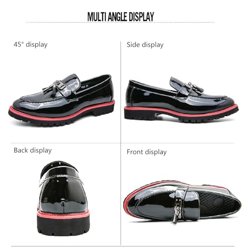 Men's Patent Leather Chain Decor Loafers Lug Sole Non-Slip Platform Tassel Dress Shoes Comfort Pointed Toe Slip-on Block Heel Oxfords for Business Driving Office Walking 5