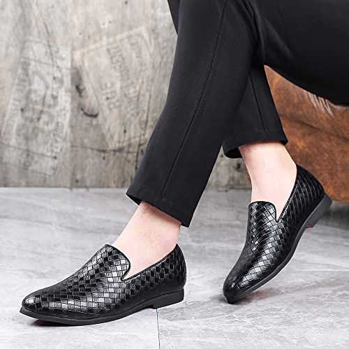 Santimon Men's Woven Moccasin Smoking Loafers Dress Casual Easy Slip-On Leather Formal Lightweight Driving Walking Shoes 6