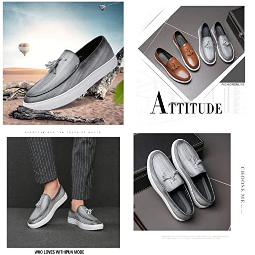 Men's Leather Tassel Slip On Loafers,Personalized Business Luxury Slip-on Leather Shoes,Slip-Resistant Driving Dress Shoes 6