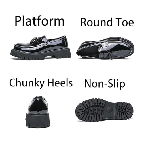 Men's Fashion Tassel Platform Loafers, Slip-On Casual Shoes Fashion Round Toe Non-Slip Lug,Business Casual Work Shoes Dress