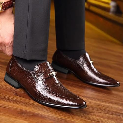 Men's Pattern Leather Loafers Fashion Classic Pointed Toe Slip On Low Top Casual Formal Shoes Business Dress Oxford Shoes