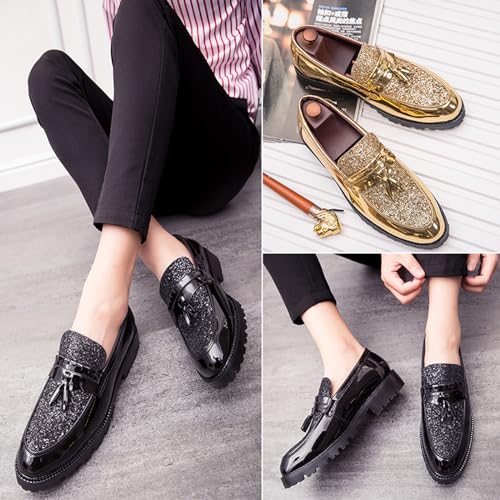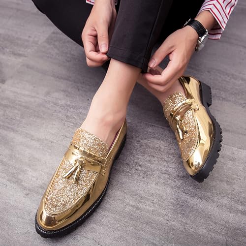 Men's Glitter Tassel Slip On Patent Loafer Fashion Round Moc Toe Patent Synthetic Leather Business Dress Shoes Causal Party Wedding Prom Shoes