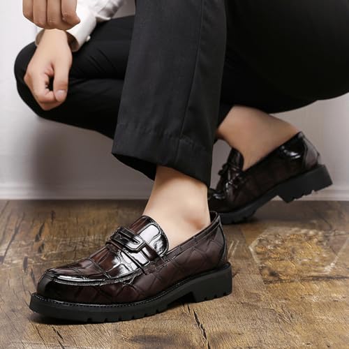Why Choose Mens Stone Grain Leather Slip On Dress Penny Loafers Low Top Non-Slip Round Toe Shoes for Formal Business Wedding Office?