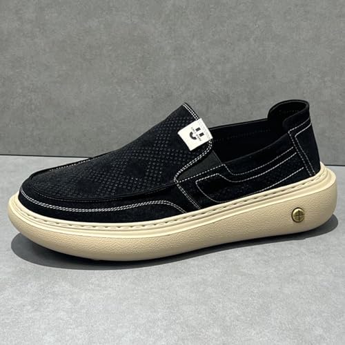 Men's Canvas Slip-on Loafers, Non-Slip Rubber Sole Men's Boat Shoes, Elastic Collar, Lightweight and Comfortable