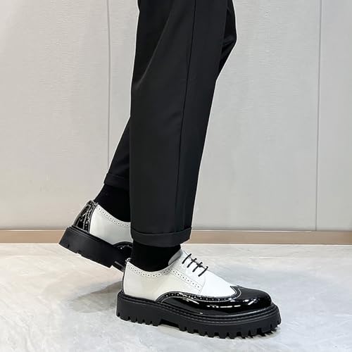 Origin: ImportedSole material: RubberOuter material: Faux LeatherClosure type: Lace-Up【Material】: The upper of this men's Oxford shoe is made of artificial leather material, and the durable stitching extends the life of the shoe.【Design】: The two-color stitching appearance is matched with the classic perforation and lace-up design, which makes the shoe more fashionable and exudes a low-key elegance.【Non Slip】: The rubber sole is flexible and wear-resistant, with good cushioning effect and enhanced shock absorption.【Occasion】: It is very suitable for various occasions, such as parties, dates, parks, driving, work, business, this shoe allows you to show your unique charm and leave a deep impression.【Versatile】: Pair with a suit, casual pants, or jeans, perfect for weddings, parties, business trips, and more, creating a refined, retro, and gentlemanly look. Perfect for everyday use. High quality materials and excellent craftsmanship ensure long-lasting durability.