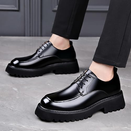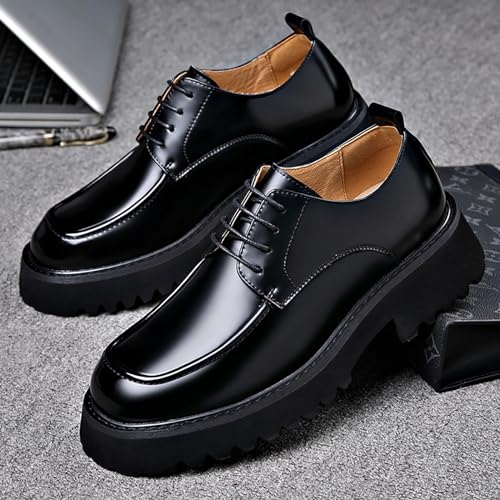 Men's Genuine Leather Platform Slip-On Oxfords Comfortable Round Toe Chunky Heightening Lace Up Loafers Non Slip Lug Sole Casual Business Work Formal Shoes 6