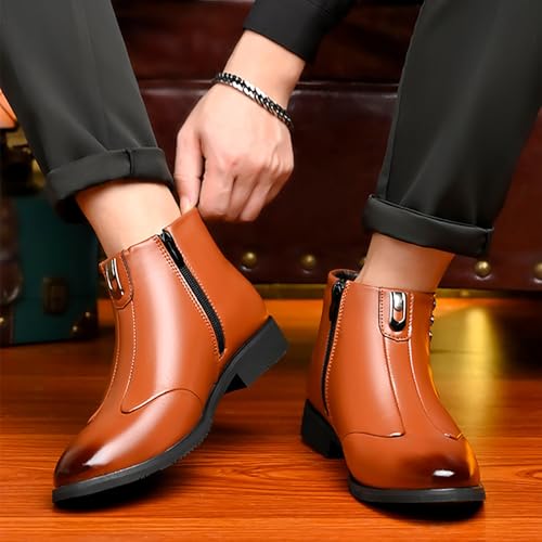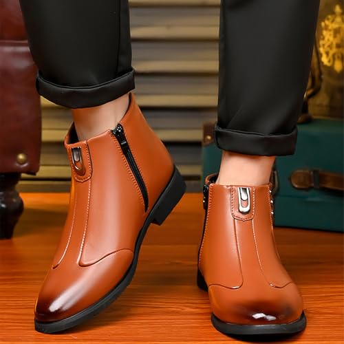 More information about Winter New Men's Leather Booties Fashion Trendy British Pointed Toe Plush Lined Warm Short Booties For Business Casual Occasions